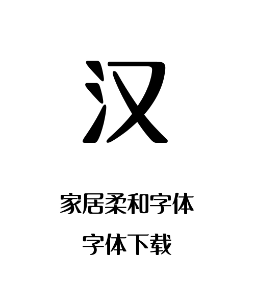 圆润转折无棱角,笔画粗细过渡自然,家具品牌LOGO、家居杂志排版、软装设计说明,适配温馨的居家场景。